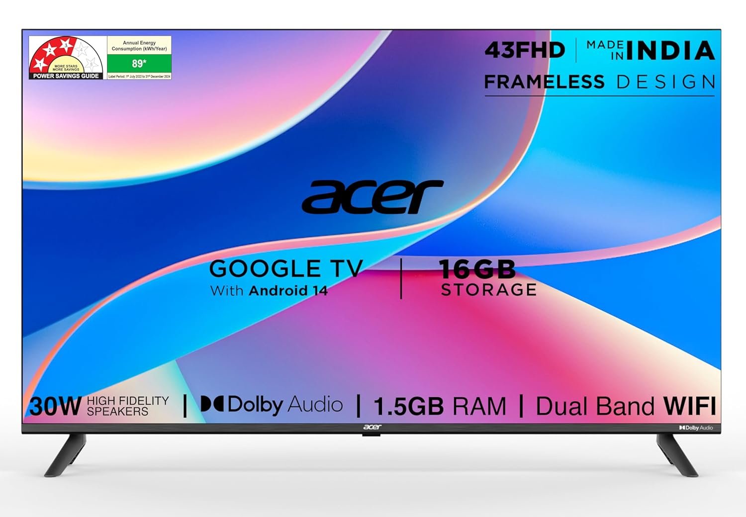 - Smart TV Features: Google TV with Android 14 | Content Recommendations | Dual Band WiFi | Bluetooth 5.0 | Casting option- Googlecast, Fastcast, Meeting mode | 1.5GB RAM | 16GB Storage | Watchlist | Personal Profile | Kids Profile | Google Assistant | Voice enabled Smart Remote | Hotkeys for Quick Access – Netflix, Prime Video, YouTube, Disney+Hotstar | Quad Core Processor | Screen Saver |